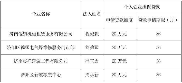 起步区个人创业担保贷款审核通过名单公示