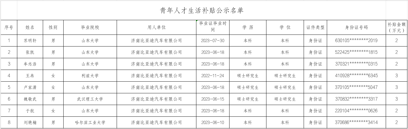 根据《关于印发《济南新旧动能转换起步区人才发展支持政策实施细则(试行)》的通知》(济起人才办发〔2023〕1号)的相关规定,经审核,现有8名高校毕业生符合申领条件。现将名单进行公示。