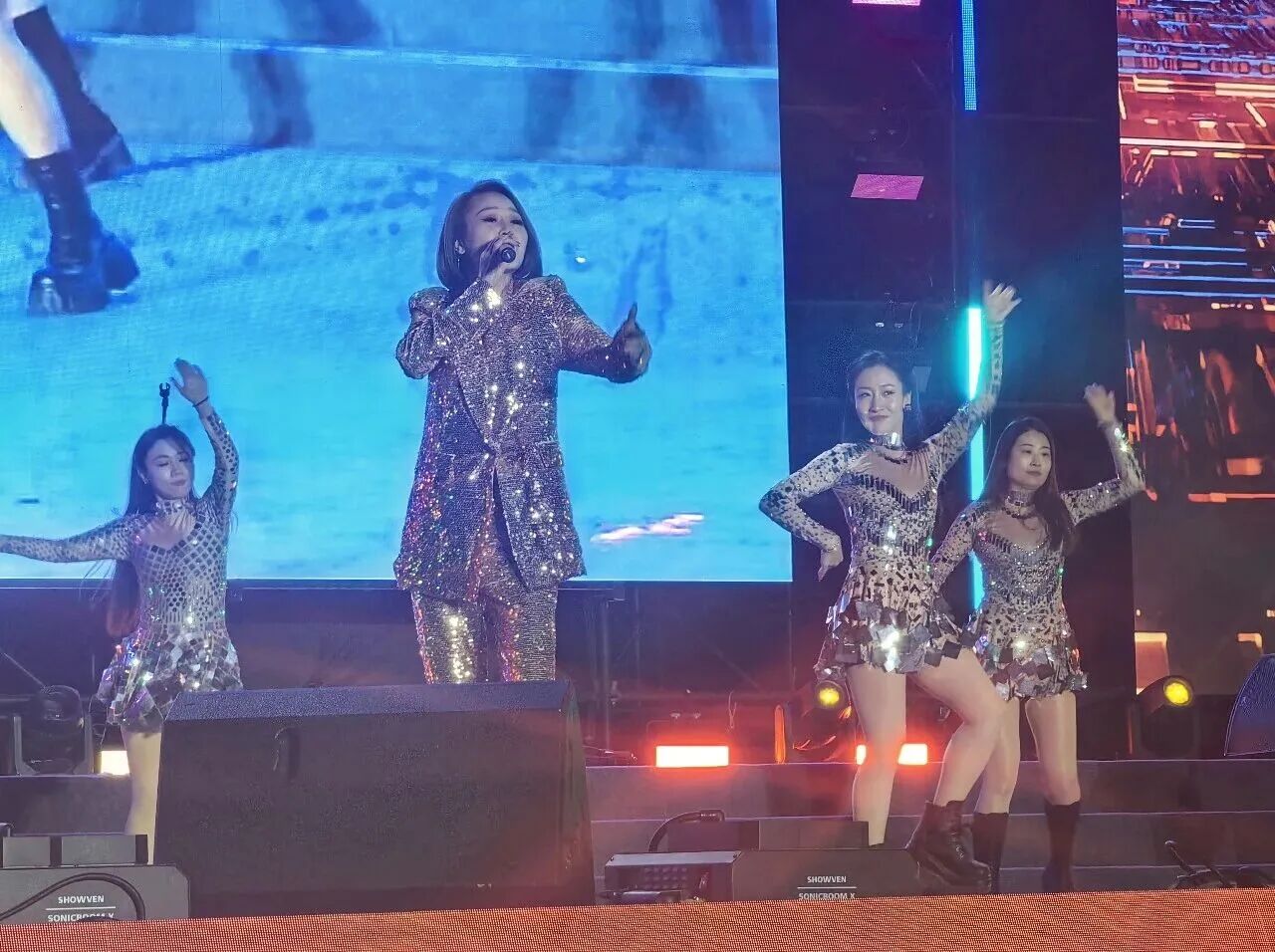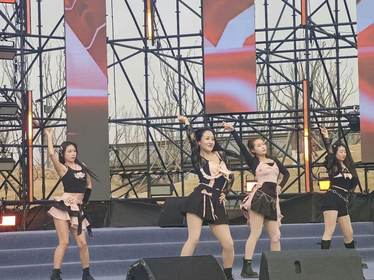 夜幕降临,璀璨灯光将舞台勾勒得如梦似幻。孙苗携手青柠舞团以一首火热歌曲歌伴舞开场,强劲节奏、火热舞姿搭配极具爆发力的嗓音,瞬间驱散冬日寒意,观众纷纷起身鼓掌摇摆。随后孙苗再唱经典,引发全场大合唱,歌声与欢呼声交织成欢乐的海洋。后青春乐队晚间场注入摇滚能量,甜蜜浪漫、热血激昂、温暖治愈轮番唱响,经典旋律打动人心。青柠舞团也轮番带来爵士舞蹈,舞者们身着璀璨演出服,在梦幻灯光下踏出利落舞步,尽显青春活力。