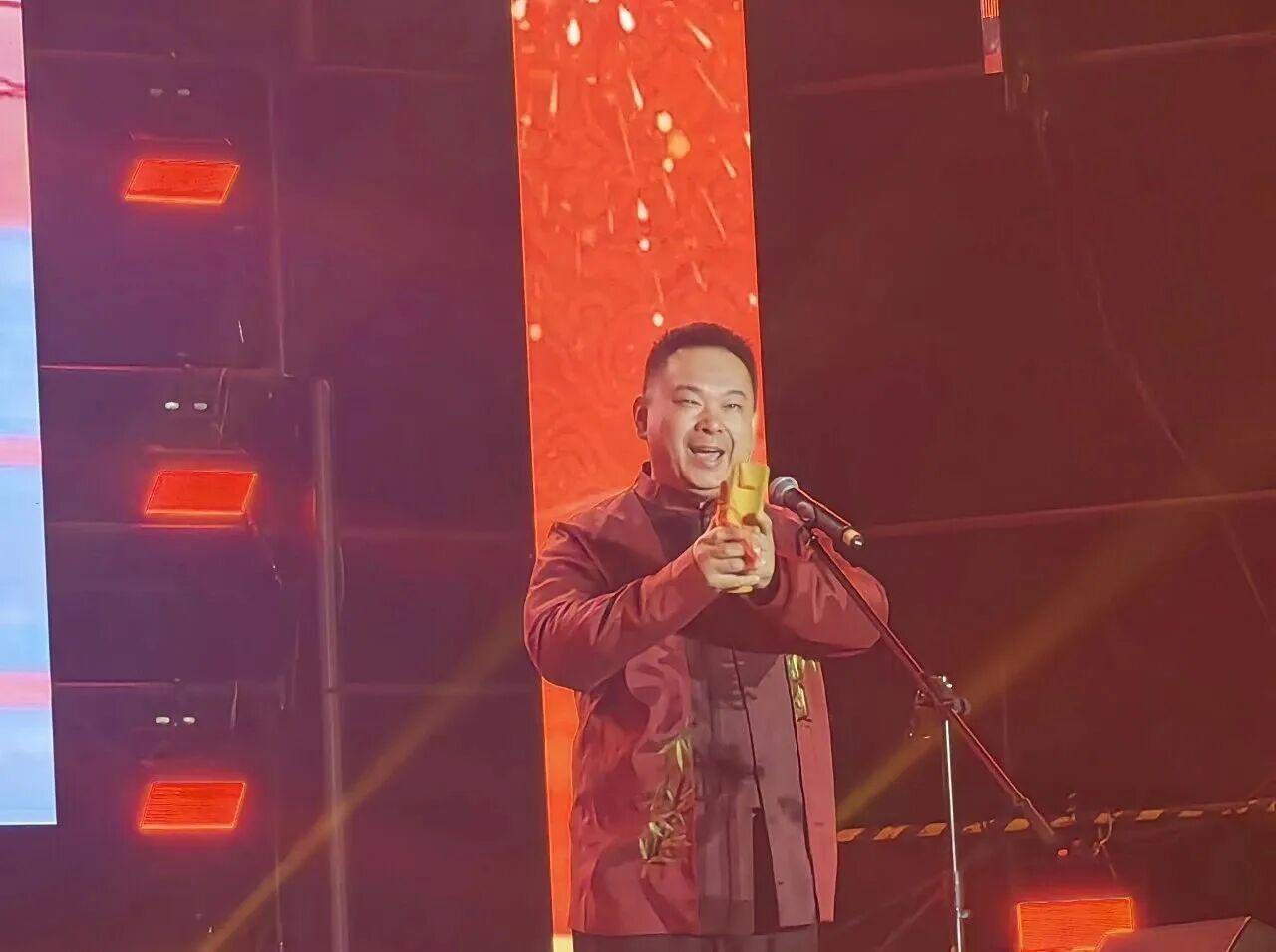 济南“曲山艺海”的底蕴在这里流淌。相声表演妙语连珠、包袱频出,演员默契配合与即兴互动让现场笑声此起彼伏。西河大鼓诙谐生动,山东快书节奏铿锵,快板字字珠玑,地道的齐鲁乡音与精湛的非遗技艺,让观众沉浸式感受传统民俗的魅力。山东琴书韵味悠长,细腻的唱念将经典桥段娓娓道来,尽显传统艺术之美,在夜色的映衬下更添古典韵味。