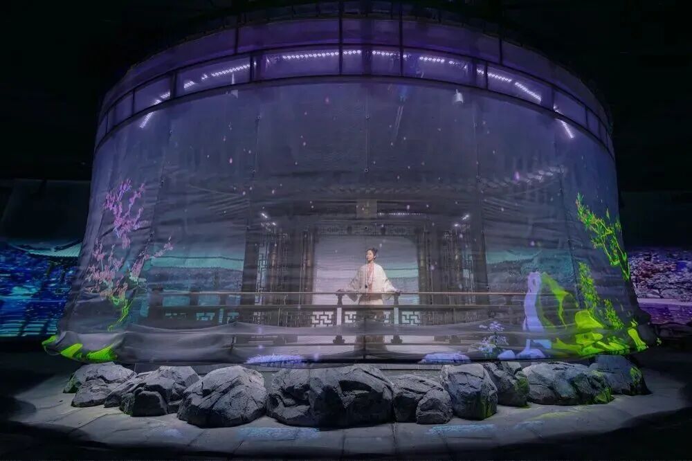 以济南名人李清照词意为脉络,有《沉醉溪亭》《三盏醉流年》等沉浸式演绎,还有齐州夜市、宋氏互动游戏,一步入宋境,沉浸式感受千年词韵与济南烟火气,现场就能咨询票务、演艺场次,逛展+文旅无缝衔接!