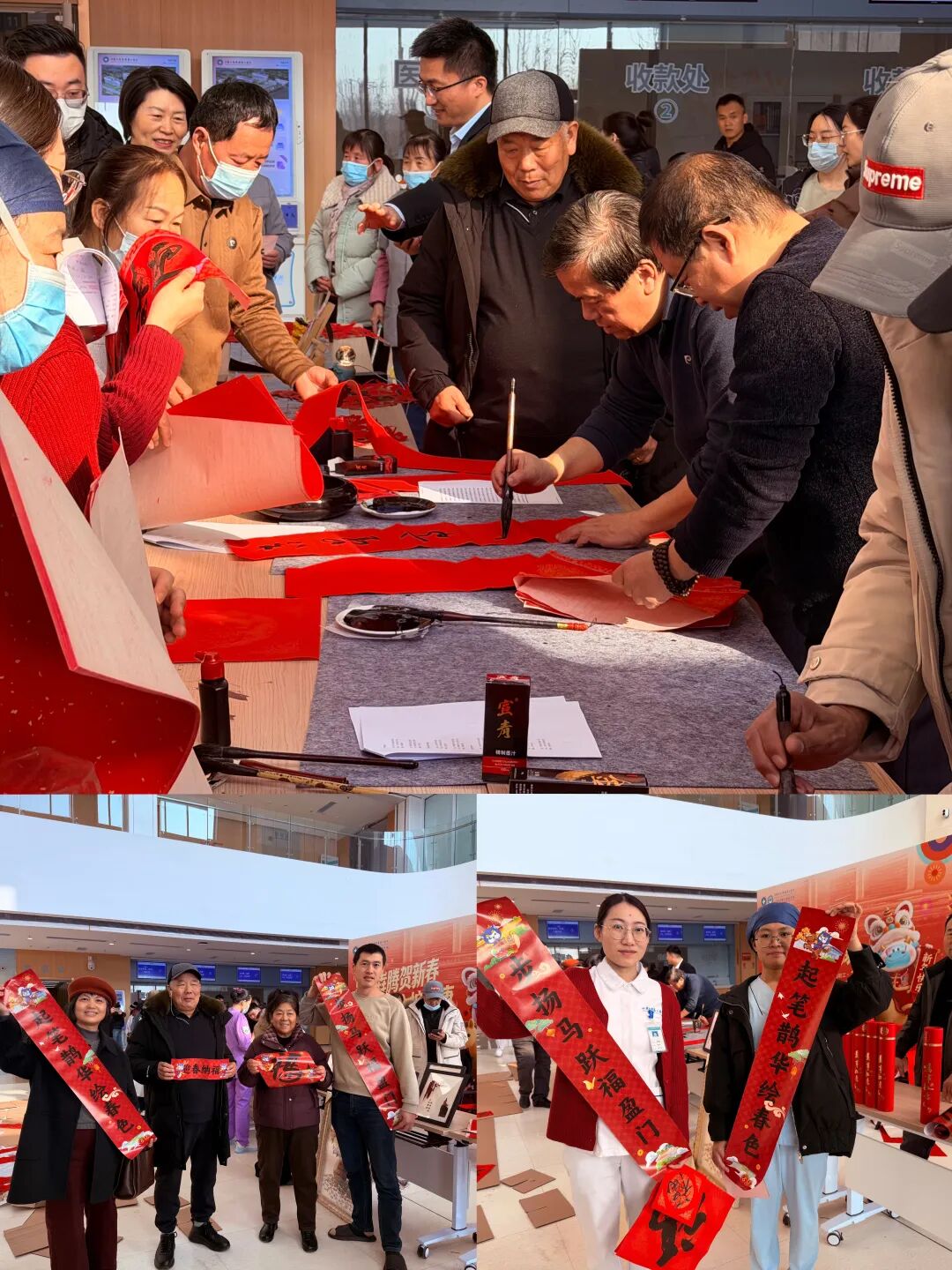 起步区“流动的新时代文明实践站”再度启航,走进不同场景,送去同样的温暖。在山东大学第二医院北院区,区宣传文化部联合院方开展的“翰墨送福暖医护 非遗添彩迎新春”活动,让原本忙碌的医疗场所充满了喜庆祥和的文化气息。来自医院及崔寨街道清宁书院的书法爱好者们挥毫泼墨,一幅幅寓意吉祥的春联和“福”字被赠予医护人员与患者,传递着对健康平安的深情祈愿。现场的非遗展示摊位,让医务工作者在繁忙之余得以领略传统手工艺的魅力。活动同时融入了起步区精神文明建设品牌宣传,特色文创产品加深了群众对这片热土的认同。