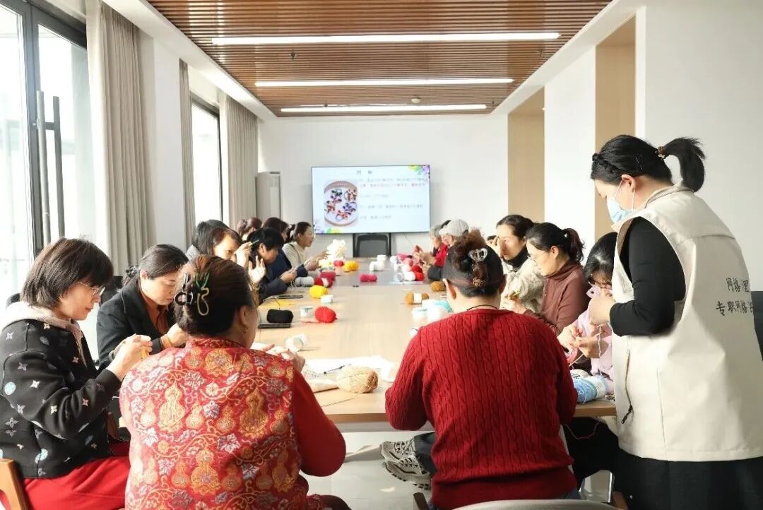 活动室内,阳光透过窗户洒落在长桌上,居民们围坐一起,手指翻飞间彩线穿梭。大家聚精会神地穿针引线,时不时说着家长里短,欢声笑语不断。不一会儿,一枚枚精致的花朵、一个个憨态可掬的玩偶便从指尖诞生,这些惟妙惟肖的手工作品,凝结着巧思与匠心,也记录着邻里间的温馨时光。