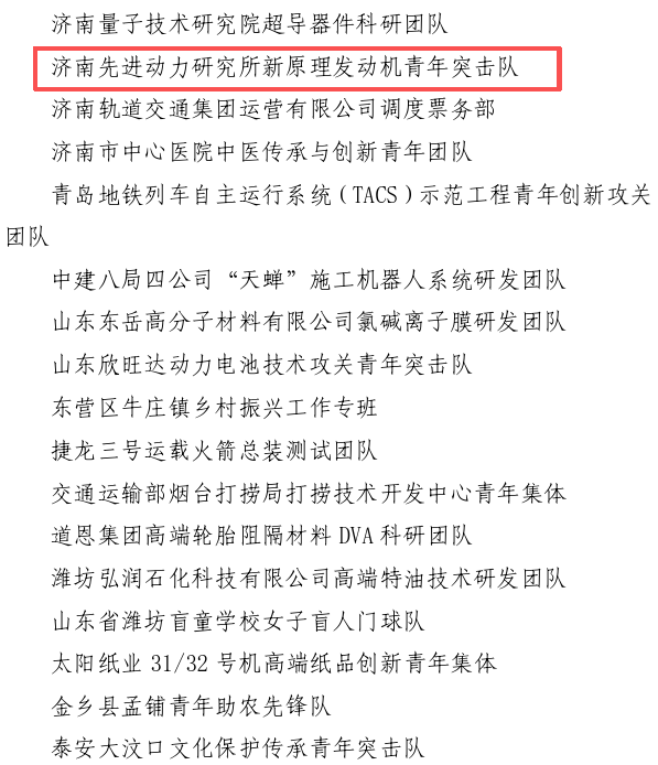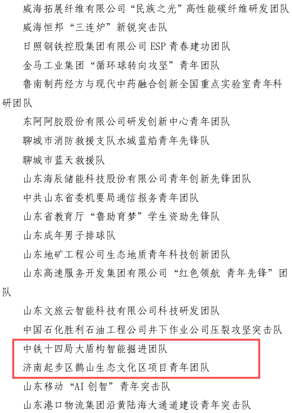 4月27日,第27届山东青年五四奖章评选结果揭晓。济南先进动力研究所新原理发动机青年突击队、中铁十四局大盾构智能掘进团队、鹊山生态文化区项目青年团队等3支集体光荣上榜,荣获“山东青年五四奖章集体”称号。三个团队聚焦智能建造、科技攻关、生态文化等重点领域,以实际行动展现了青年挺膺担当、勇立潮头的奋斗风采,以青春之力赋能新城高质量发展,为济南起步区加快成势和济南强省会建设贡献更多力量。