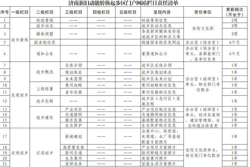 2025年,一是对主动公开目录进行梳理,科学规范优化政务公开栏目板块,原84个子栏目调整为118个,推动政务公开工作更加标准化和规范化。二是责任监管从严从细,立足集约共享、高效便民,推动完成网站升级改版,及时更新《济南新旧动能转换起步区网站栏目责任清单》,对八大模块179个栏目的责任划分和更新频次进行明确,切实提升网上窗口监督工作质量和实效。三是科学精减后台运维账号,严格落实《济南新旧动能转换起步区政府网站和政务新媒体管理办法》,全面清理调整起步区成立以来开设的所有后台运维账号,94个后台账号压缩保留18个,全方位打造优质精品栏目、精品服务和精品网站。