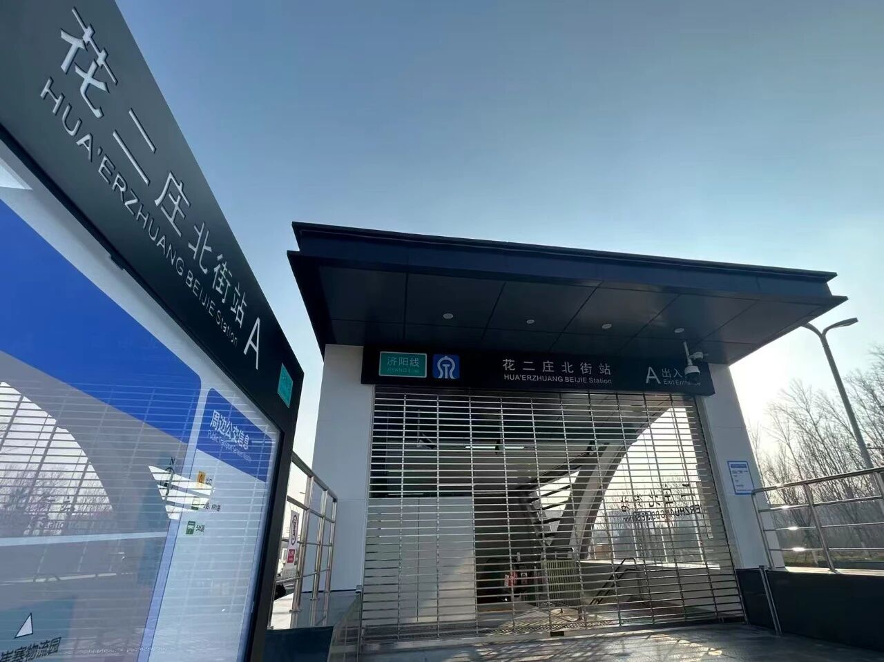 作为线路北段的重要站点,花二庄北街站视野开阔,简洁的站体在蓝天下勾勒出清晰的线条。该站点是起步区空间拓展的战略支点。它的开通,不仅强化了与济阳区的联动,更将引导教育、医疗、居住等优质公共资源沿轨道廊道向北布局,为一座宜居宜业新城的崛起铺就轨道基石。