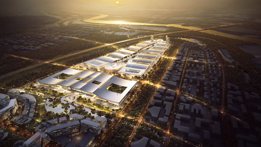 总建筑面积约168.7万㎡,净展览面积达51万㎡,由展览中心、会议中心和酒店中心三大板块组成,将打造为全球首座“会展+产业”融合发展的经济园区。