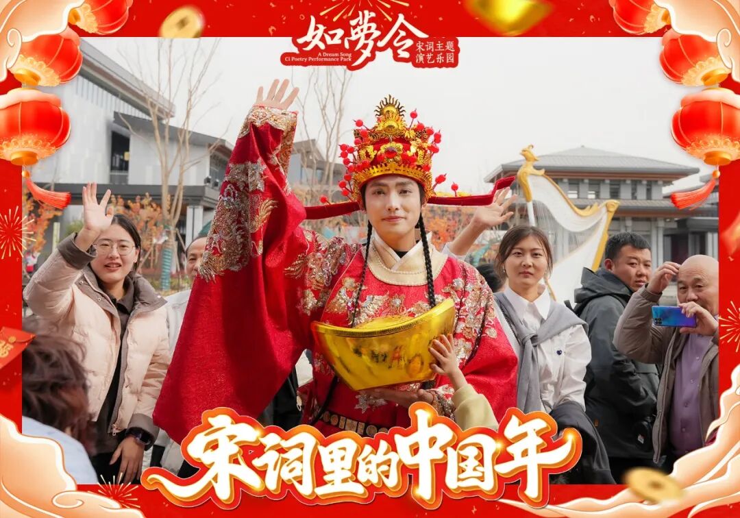 精彩的演出是吸引游客的第一步,而丰富多元、可玩可购的沉浸式场景,则是让游客愿意长时间停留并多次来访的核心。在“如梦令”宋词主题区,游客可以沉浸于古风意境中互动打卡。一街之隔的鹊华中新园,则以独特的“娘惹味”新年风情吸引眼球。这里不仅提供娘惹服饰换装体验,还有南洋风味小吃和手工艺品市集,许多游客专门为此前来,品尝特色美食、拍摄异域风情大片,产生了可观的特色消费。