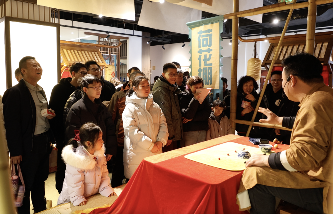 一街之隔,则是另一重天地。鹊华中新园内,娘惹服饰换装、狮城游园会、肉骨茶的南洋香气扑面而来,新开业的一尺之间咖啡馆里飘出现代生活的闲适。游客上午还在大宋年俗里流连,下午已置身新加坡的街头巷尾。这种“一园两世界”的场景并置,让起步区的灯会既有传统文化的厚度,又有国际视野的广度。泉韵LIVE主题区内,美食摊位升腾起人间烟火,年轻人举着特色小吃穿行于流光溢彩之间,“逛吃玩看”的丰富业态以及一站式体验自然拉长了游园动线。