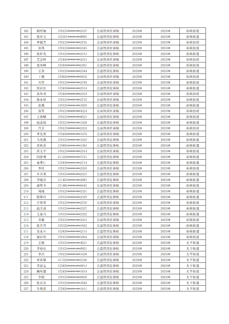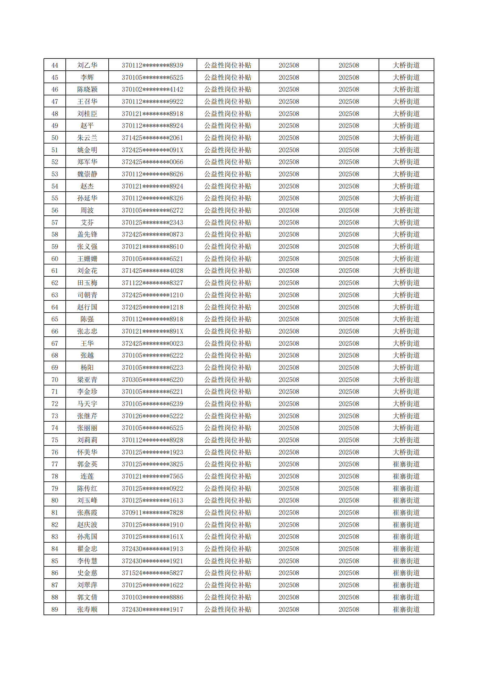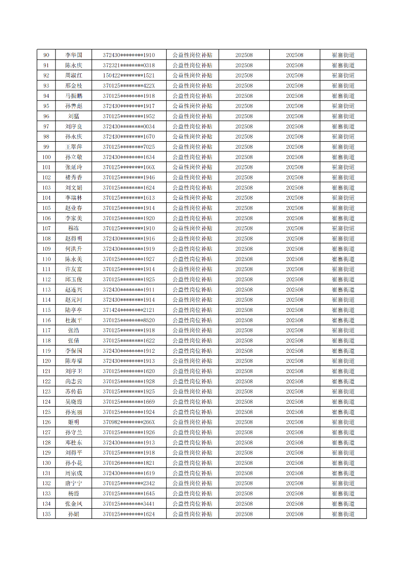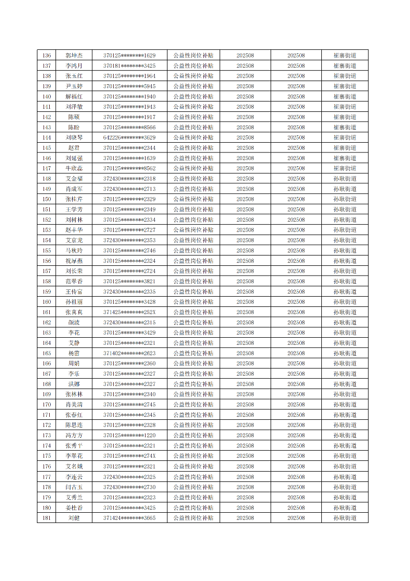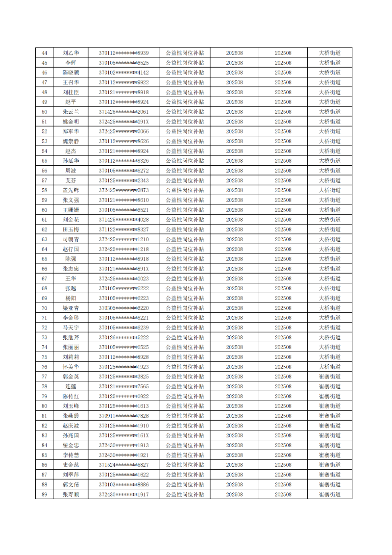 济南起步区2025年8月城镇公益性岗位补贴公示