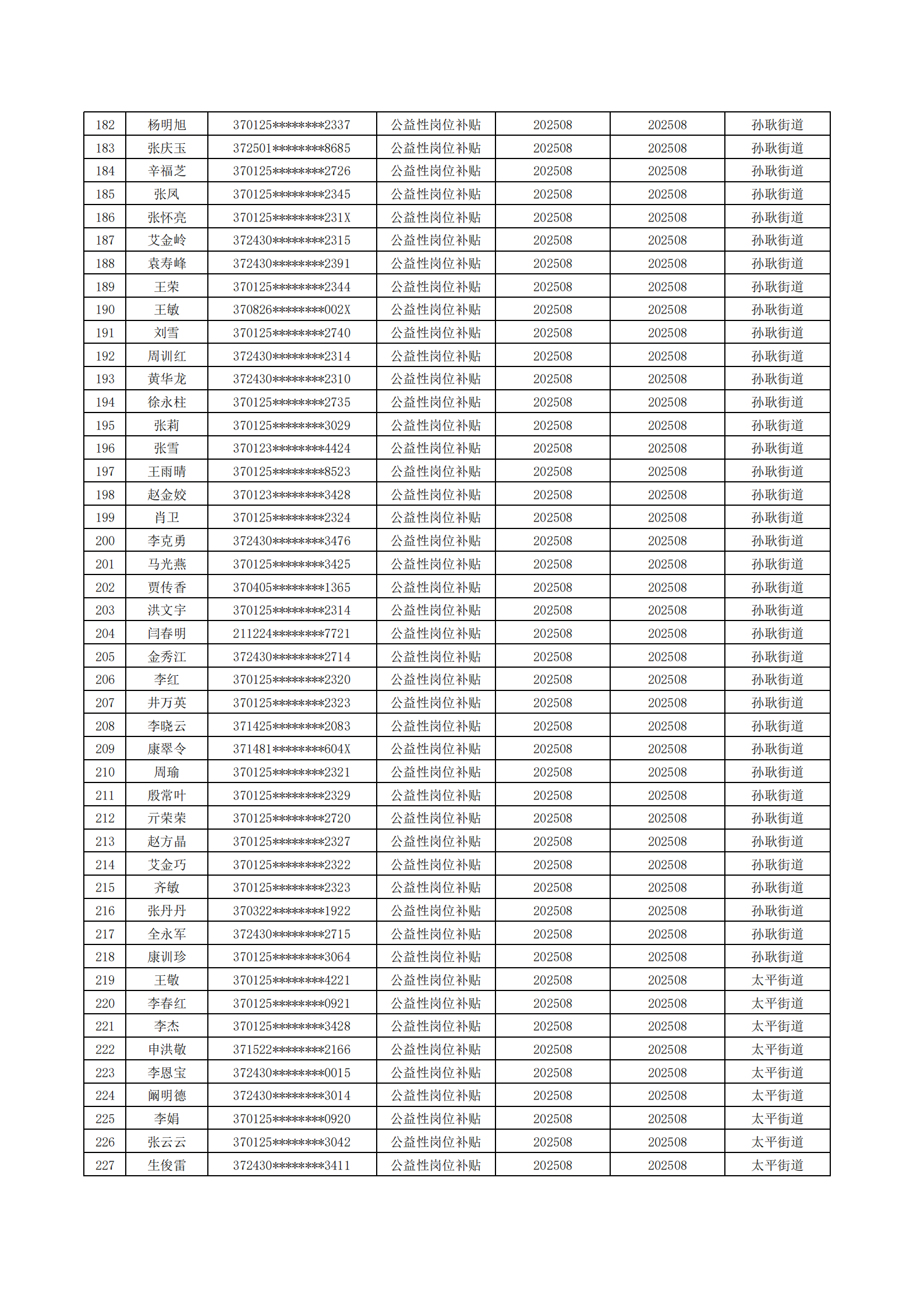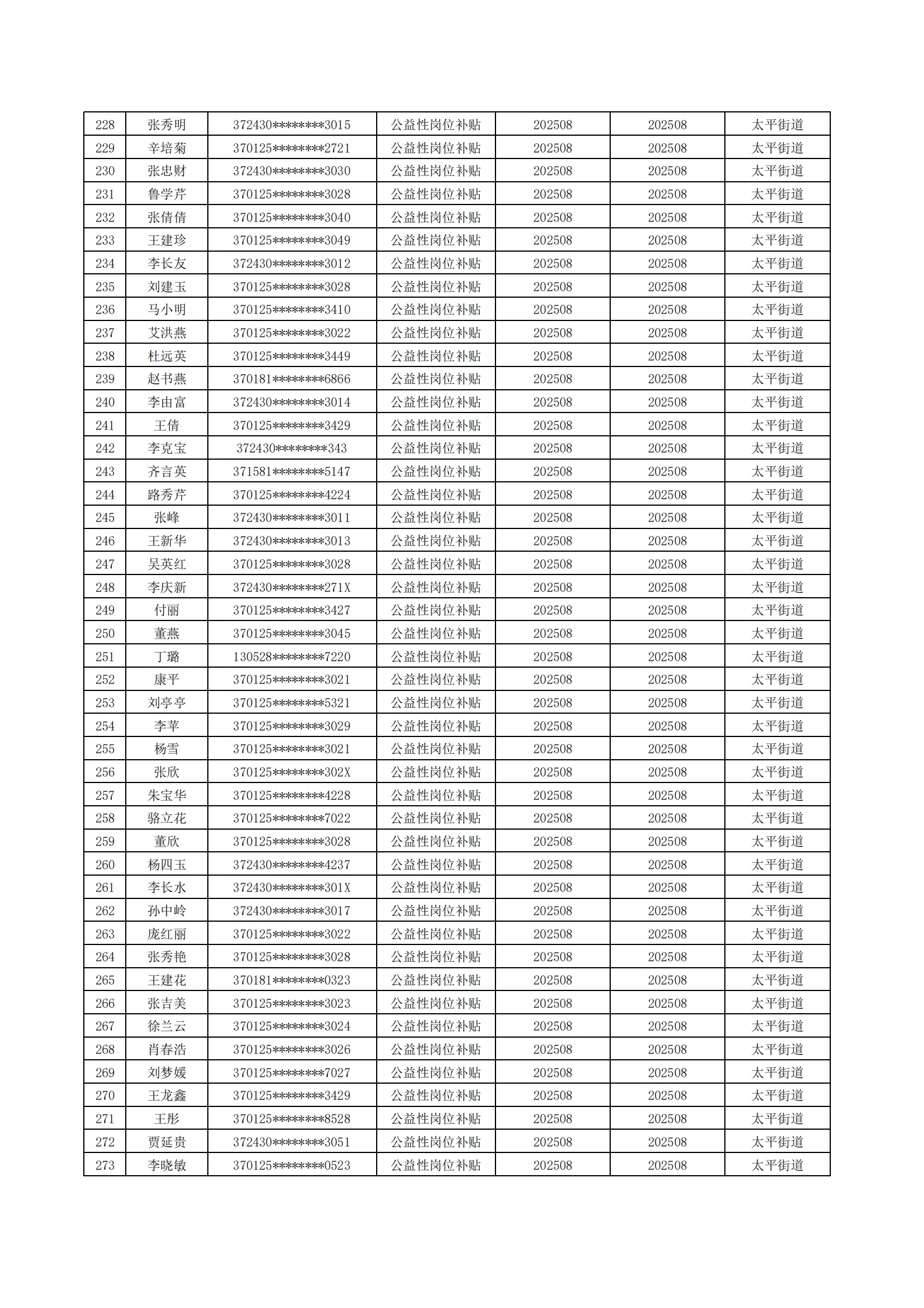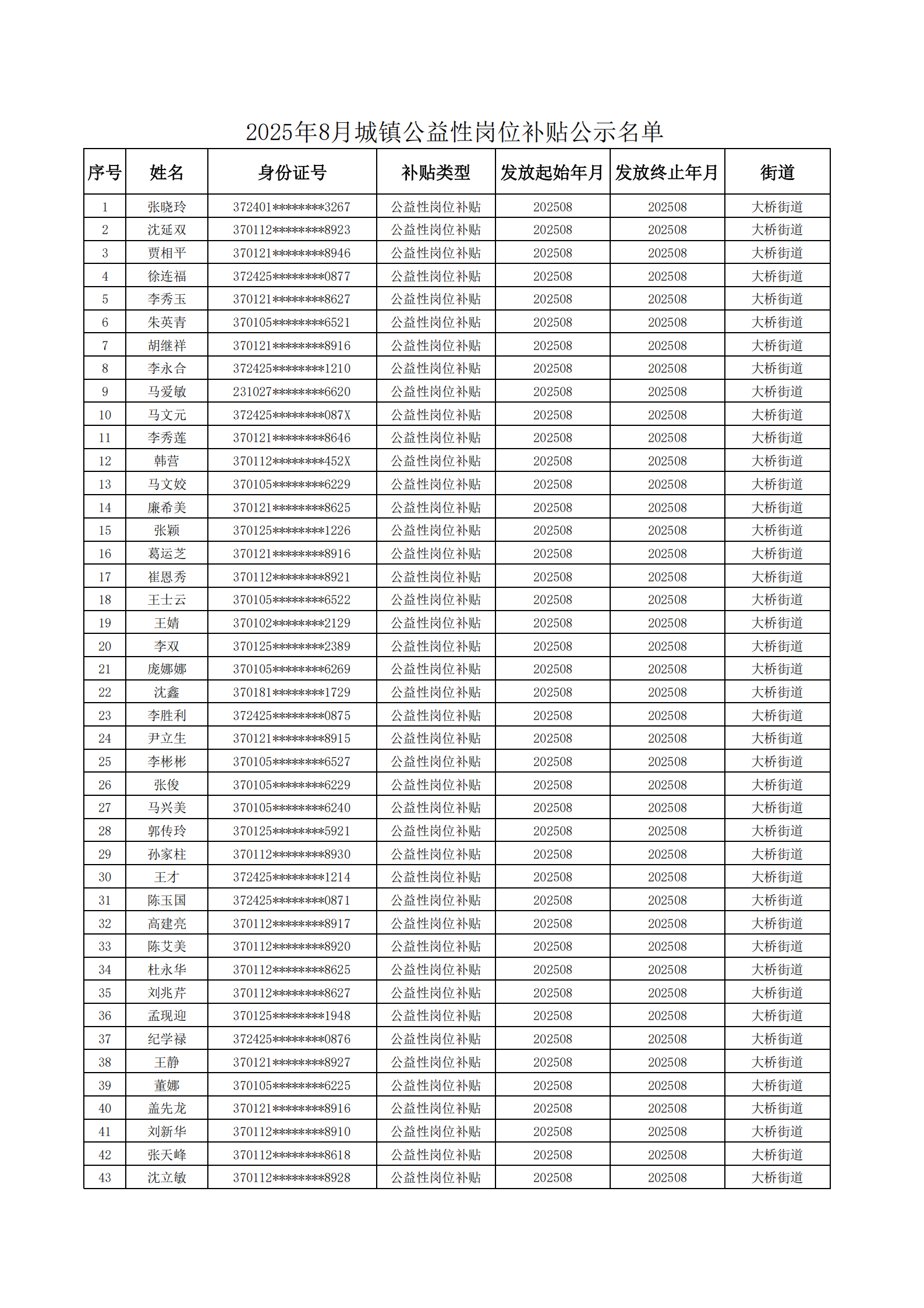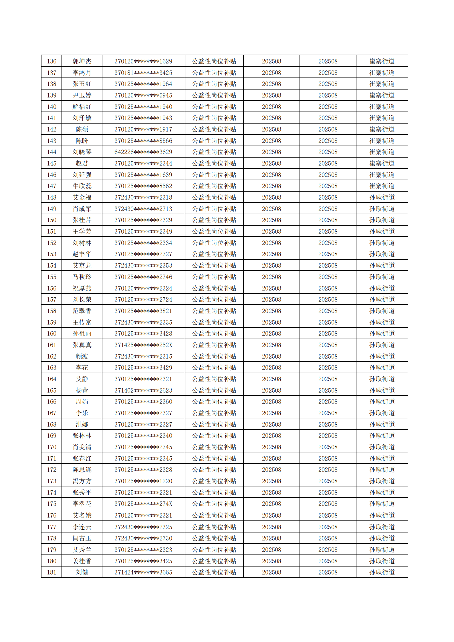 济南起步区2025年8月城镇公益性岗位补贴公示